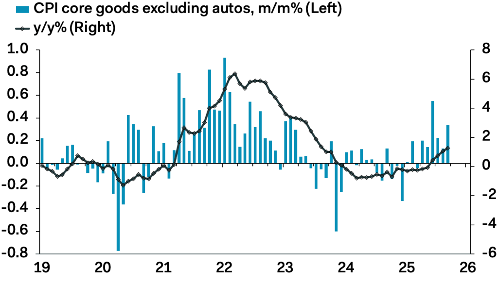 Swonk highlights that many categories keeping inflation in check are either shielded from tariffs or benefiting from temporary exemptions, such as computers, smartphones, and certain vehicle imports. She cautions that as these factors diminish, “goods prices will continue to rise,” with minimal indications of widespread disinflation. She estimates that core services, excluding shelter—an important metric for the Fed—rose by approximately 0.4% in September, remaining more than 3% higher than a year ago, which is “well above any figures we witnessed prior to the pandemic.”